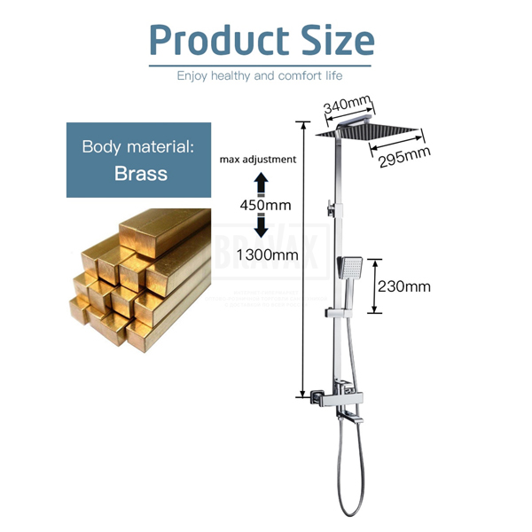 смеситель, тропический душ, шланг, боковая лейка