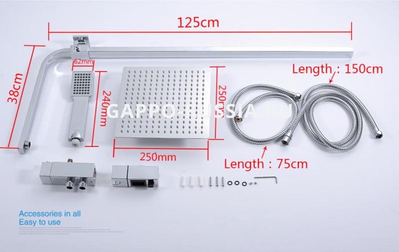 тропический душ, штанга, шланг, боковая лейка (дополнительно требуется смеситель)