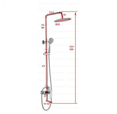Диаметр тропического душа, см