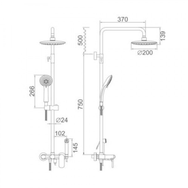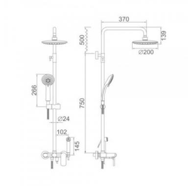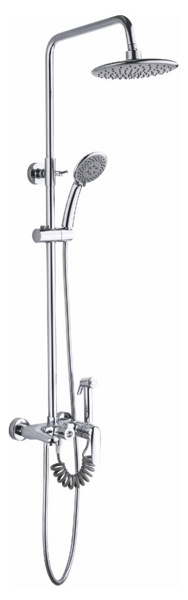 штанга и крепление, смеситель с керам. картриджем Ф35 и поворотным изливом, лейки: "тропическая", д/душа, для биде+шланги