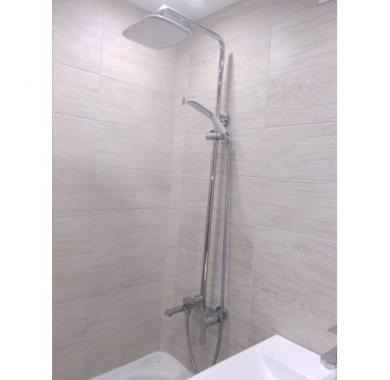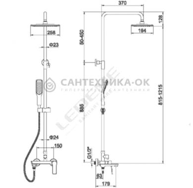 штанга и крепление, смеситель с керам. картриджем и поворотным изливом, лейка "тропическая", лейка д/душа и держатель, шланг