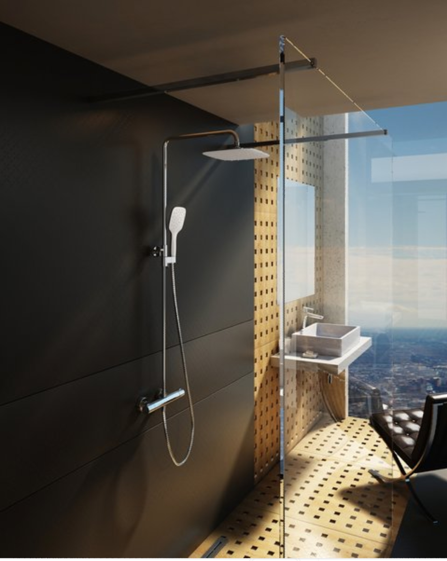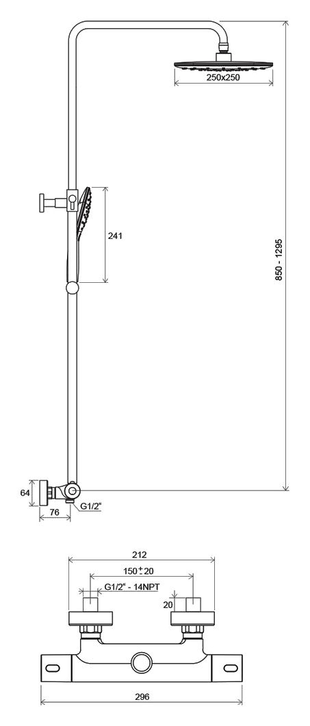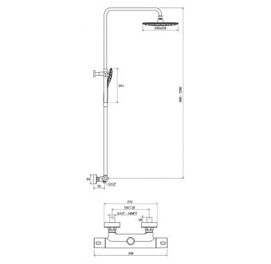 смеситель термостатический, тропический душ, шланг, лейка, держатель