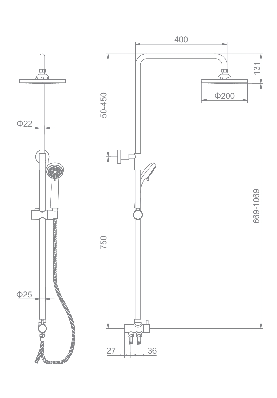 штанга и крепление, переключатель между лейками, держатель д/лейки, лейка "тропическая" и д/душа, шланг.
