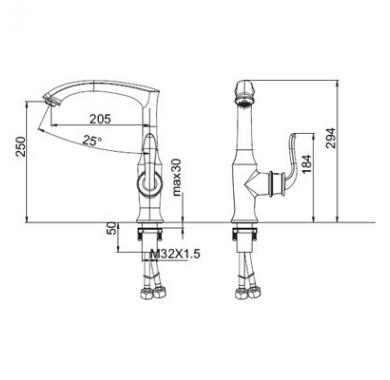 смеситель, крепление к мойке/раковине кухонной, гибка подводка 500мм