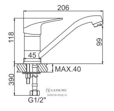 смеситель, крепление к кухонной мойке, гибка подводка 400мм
