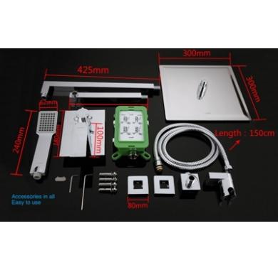 блок, тропически душ (30*30 см), штанга (40 см), накладка, нос (20 см), шланг,боковая лейка, держатель лейки